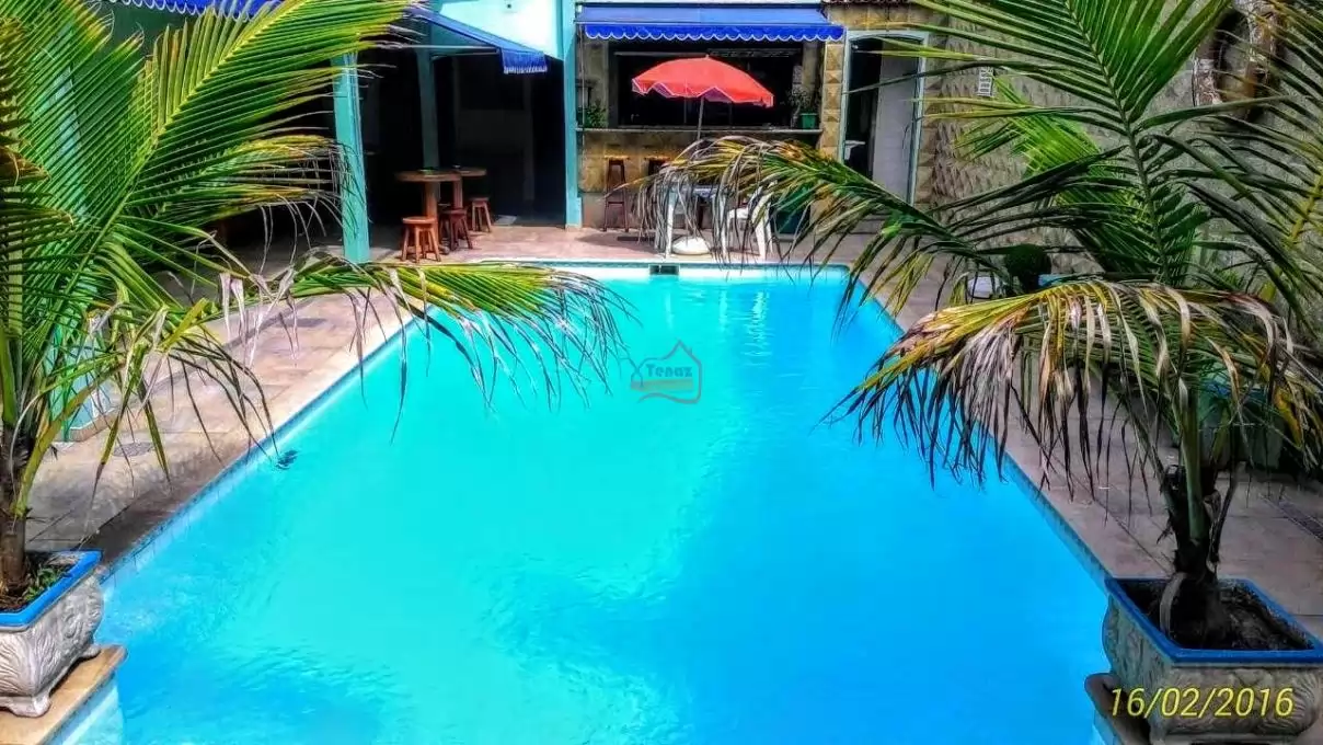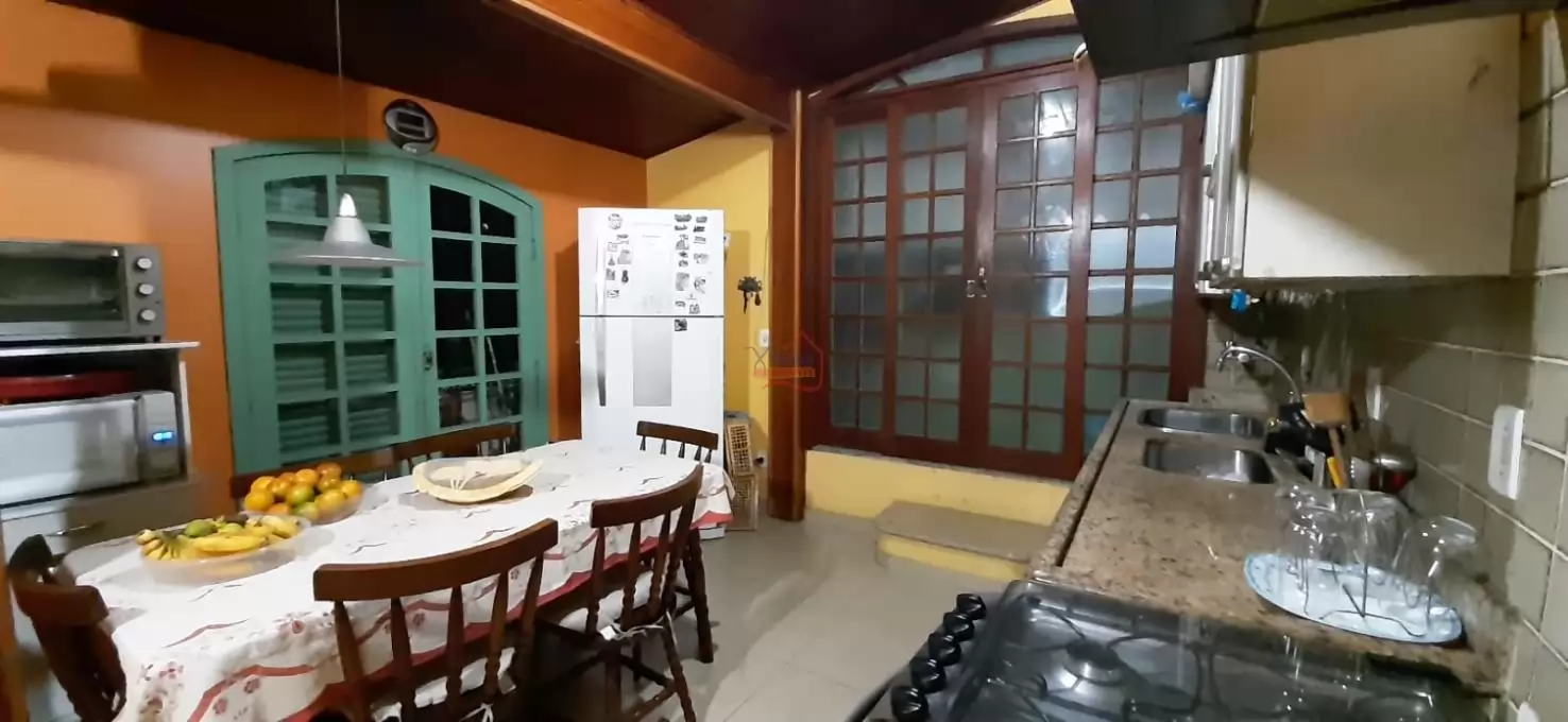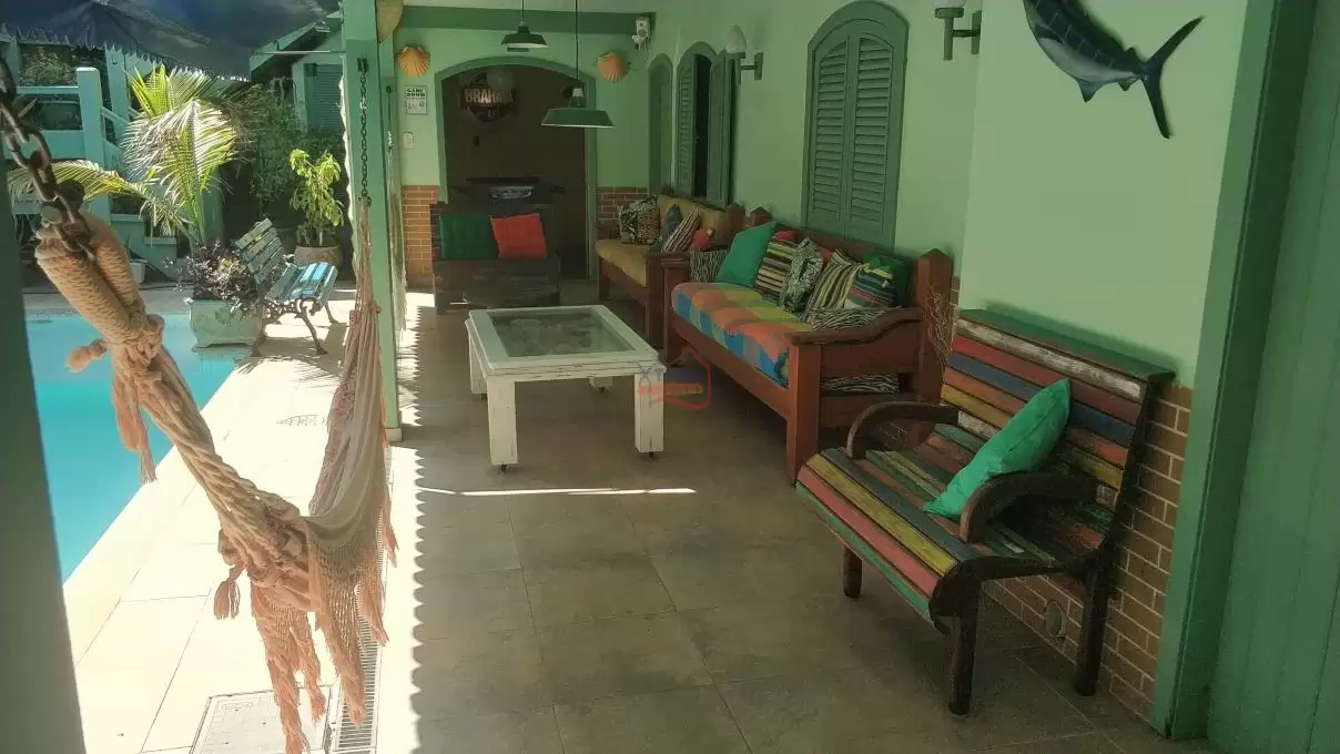 1 Varanda em frente a casa, 1 Piscina, 1 Garagem, 1 Aréa de refeição, 1 cozinha aberta em frente a piscina.